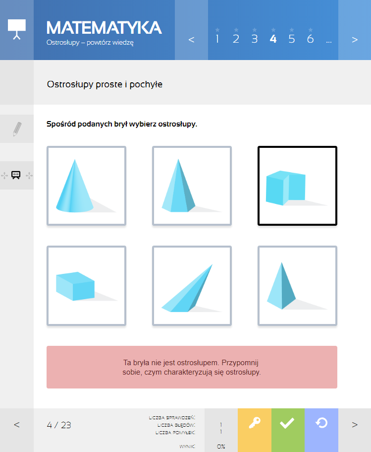 Lekcja typu “Sprawdź się”, to przede wszystkim różnorodne ćwiczenia interaktywne oraz multimedia, które dodatkowo wzbogacono o system inteligentnych reakcji na odpowiedzi użytkowników (naprowadzają na właściwe rozwiązanie),